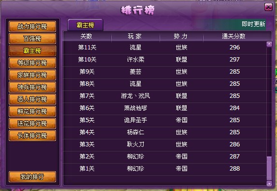 最后查看霸主榜:点击游戏界面右上方的『排行榜』按钮,即可查看霸主榜,榜中记录每一关霸主通关的时间。