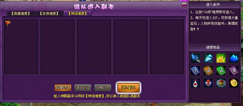 1. 在陪游斗破苍穹2中进入副本前可选择3个难度(组队进入则由队长选择难度):英雄难度、神话难度、史诗难度。3个级别难度依次递增,奖励也依次增加。