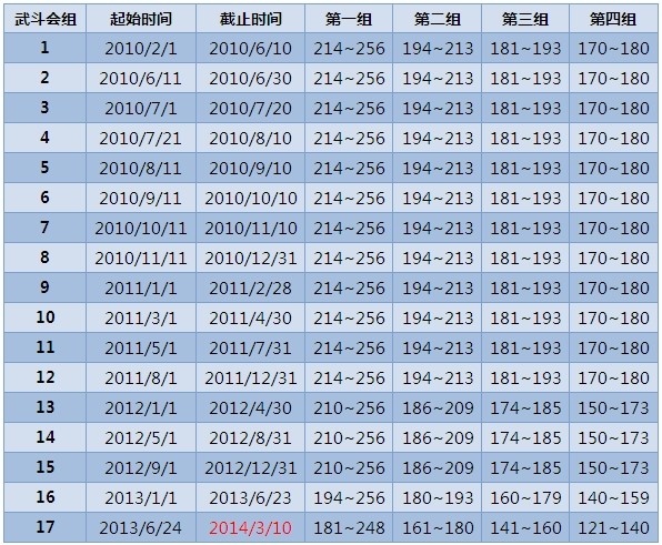 4) 按新积分更新排序列表,重新匹配。总共循环16次,即每个玩家对战16轮后,武斗会结束。