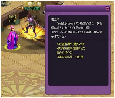 首先,通过一开始的主线任务升级,达到五星斗者境界后,就可以去拉镖赚钱了。到帝都的npc木辰(44,71)处,找他领镖车,